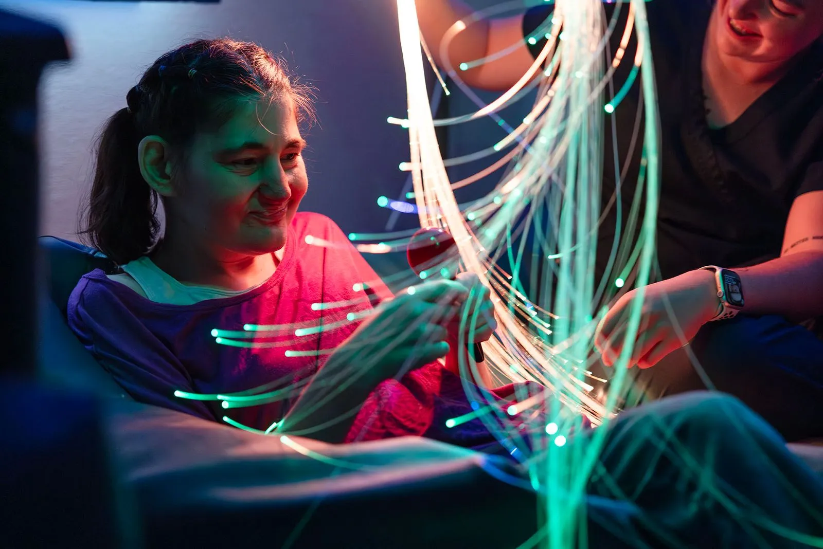 We offer a variety of services to support the health and well-being of those in our care. Round-the-clock skilled nursing care is provided by our dedicated health services team. Personalized care plans include multi-sensory therapy to stimulate the senses. Our Day Training Program helps residents learn new skills and engage with other residents and staff. In addition, residents enjoy regular outings in the greater community or simply relaxing in our courtyard or on our wheelchair-accessible swings and gliders.